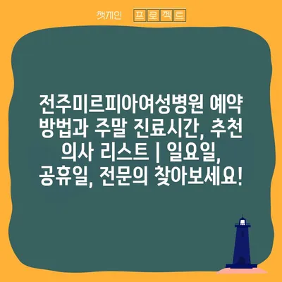 전주미르피아여성병원 예약 방법과 주말 진료시간, 추천 의사 리스트 | 일요일, 공휴일, 전연락 찾아보세요!