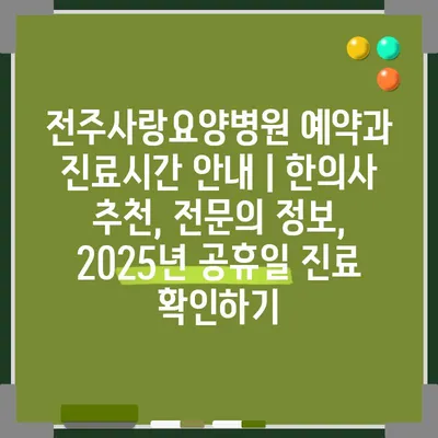 ✅ 전주사랑요양병원의 전문의 상담 시간과 예약 방법을 지금 바로 알아보세요!