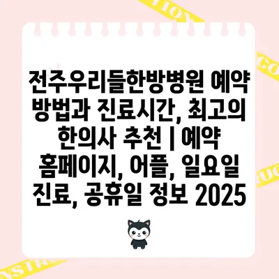 전주우리들한방병원 예약 방법과 진료시간, 최고의 한의사 추천 | 예약 홈페이지, 어플, 일요일 진료, 공휴일 정보 2025 에 대해 자주 묻는 질문 TOP 5