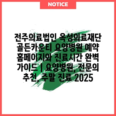 전주의료법인 옥성의료재단 골든카운티 요양병원 예약 홈페이지와 진료시간 완벽 설명서 | 요양병원, 전연락 추천, 주말 진료 2025
