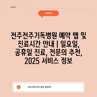 전주전주기독병원 예약 앱 및 진료시간 안내 | 일요일, 공휴일 진료, 전문의 추천, 2025 서비스 정보