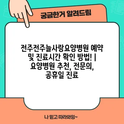 ✅ 전주전주늘사랑요양병원의 진료시간 및 예약 방법을 지금 바로 알아보세요!