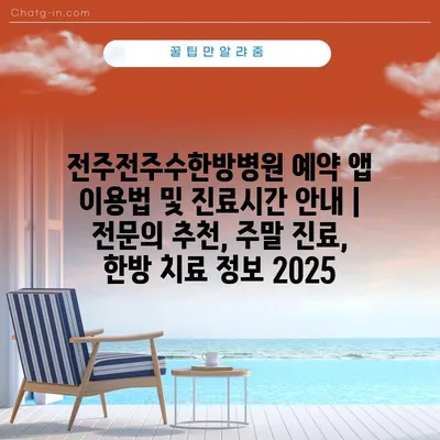 전주전주수한방병원 예약 앱 이용법 및 진료시간 공지 | 전연락 추천, 주말 진료, 한방 치료 정보 2025 에 대해 자주 묻는 질문 TOP 5