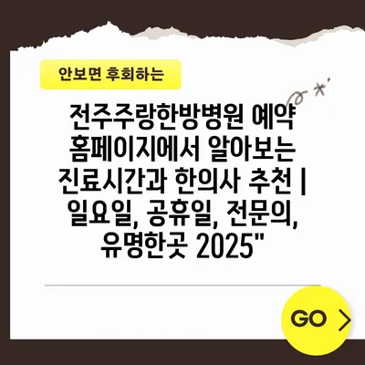 전주주랑한방병원 예약 홈페이지에서 알아보는 진료시간과 한의사 추천 | 일요일, 공휴일, 전문의, 유명한곳 2025″