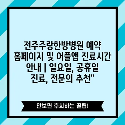 ✅ 전주주랑한방병원 진료시간을 쉽게 예약하세요.