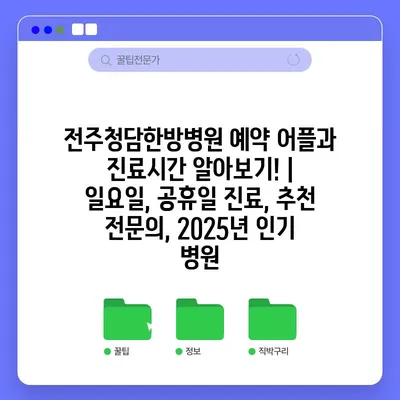 전주청담한방병원 예약 어플과 진료시간 알아보기! | 일요일, 공휴일 진료, 추천 전연락, 2025년 인기 병원 에 대해 자주 묻는 질문 TOP 5
