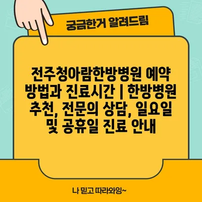전주청아람한방병원 예약 방법과 진료시간 | 한방병원 추천, 전문의 상담, 일요일 및 공휴일 진료 안내