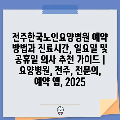 전주한국노인요양병원 예약 방법과 진료시간, 일요일 및 공휴일 의사 추천 설명서 | 요양병원, 전주, 전연락, 예약 앱, 2025 에 대해 자주 묻는 질문 TOP 5