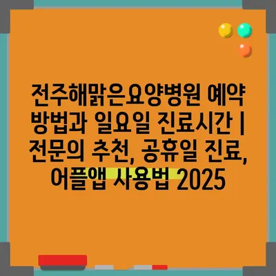 전주해맑은요양병원 예약 방법과 일요일 진료시간 | 전연락 추천, 공휴일 진료, 어플앱 사용법 2025 에 대해 자주 묻는 질문 TOP 5