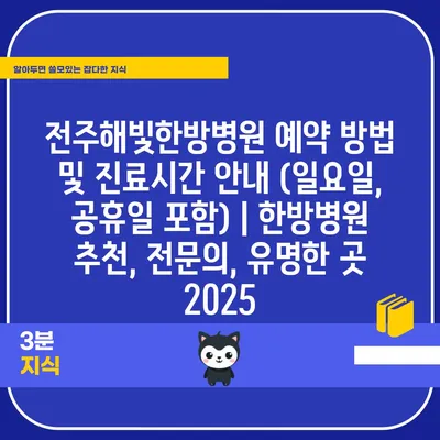 ✅ 2025년 전주해빛한방병원의 진료시간과 예약 방법을 자세히 알아보세요.