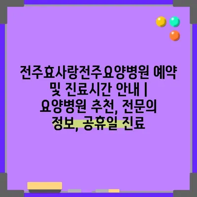 ✅ 전주 효사랑 전주요양병원의 예약 및 진료시간을 빠르게 확인하세요!