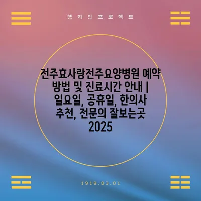 전주효사랑전주요양병원 예약 방법 및 진료시간 공지 | 일요일, 공휴일, 한의사 추천, 전연락 잘보는곳 2025