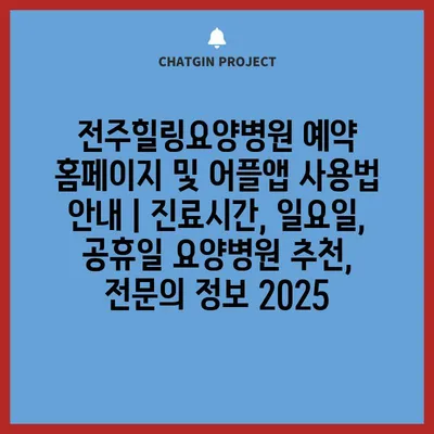 ✅ 전주힐링요양병원의 진료시간과 예약 방법을 한눈에 알아보세요.