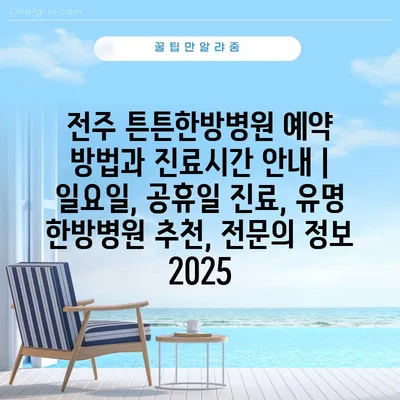 전주 튼튼한방병원 예약 방법과 진료시간 안내 | 일요일, 공휴일 진료, 유명 한방병원 추천, 전문의 정보 2025