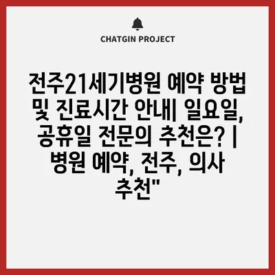 ✅ 전주21세기병원 예약 방법과 진료시간을 지금 확인해보세요!