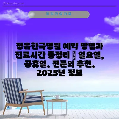 정읍한국병원 예약 방법과 진료시간 총정리 | 일요일, 공휴일, 전연락 추천, 2025년 정보 에 대해 자주 묻는 질문 TOP 5