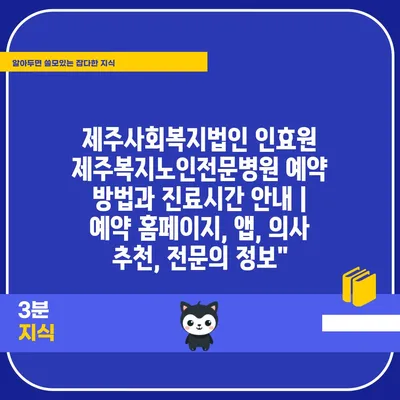 제주사회복지법인 인효원 제주복지노인전문병원 예약 방법과 진료시간 공지 | 예약 홈페이지, 앱, 의사 추천, 전연락 정보에 대해 자주 묻는 질문 TOP 5