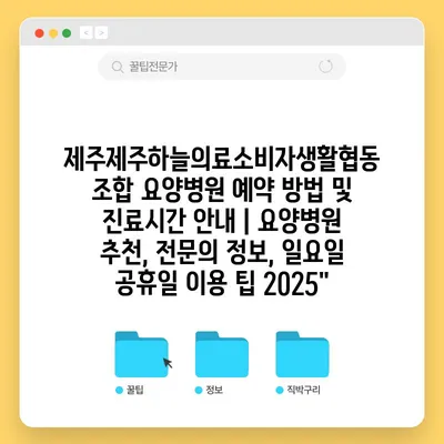 제주제주하늘의료소비자생활협동조합 요양병원 예약 방법 및 진료시간 공지 | 요양병원 추천, 전연락 정보, 일요일 공휴일 이용 팁 2025