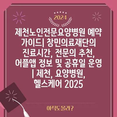 제천노인전문요양병원 예약 설명서| 창민의료재단의 진료시간, 전연락 추천, 어플앱 정보 및 공휴일 운영 | 제천, 요양병원, 헬스케어 2025 에 대해 자주 묻는 질문 TOP 5