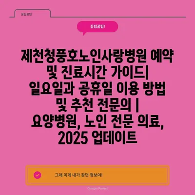 ✅ 제천청풍호노인사랑병원의 예약 절차와 진료 시간을 자세히 알아보세요.