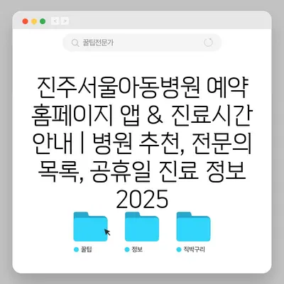 진주서울아동병원 예약 홈페이지 앱 & 진료시간 공지 | 병원 추천, 전연락 목록, 공휴일 진료 정보 2025