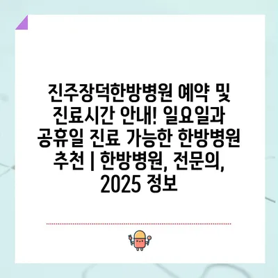 진주장덕한방병원 예약 및 진료시간 안내! 일요일과 공휴일 진료 가능한 한방병원 추천 | 한방병원, 전문의, 2025 정보