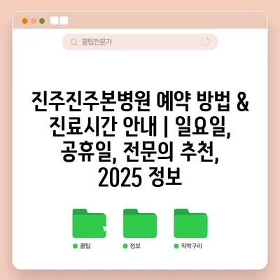 진주진주본병원 예약 방법 & 진료시간 공지 | 일요일, 공휴일, 전연락 추천, 2025 정보에 대한 내용을 소개합니다.