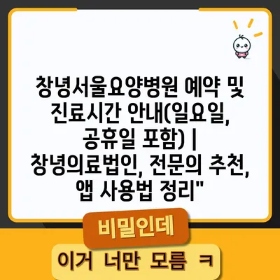 ✅ 창녕서울요양병원의 예약 방법과 진료 시간을 자세히 알아보세요.