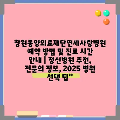창원동양의료재단연세사랑병원 예약 방법 및 진료 시간 공지 | 정신병원 추천, 전연락 정보, 2025 병원 선택 팁
