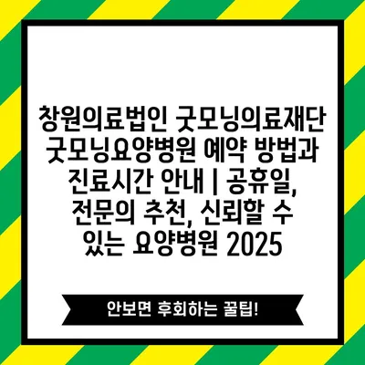 창원의료법인 굿모닝의료재단 굿모닝요양병원 예약 방법과 진료시간 공지 | 공휴일, 전연락 추천, 신뢰할 수 있는 요양병원 2025