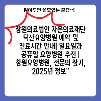 창원의료법인 자은의료재단 덕산요양병원 예약 및 진료시간 공지| 일요일과 공휴일 요양병원 추천 | 창원요양병원, 전연락 찾기, 2025년 정보” 에 대해 자주 묻는 질문 TOP 5