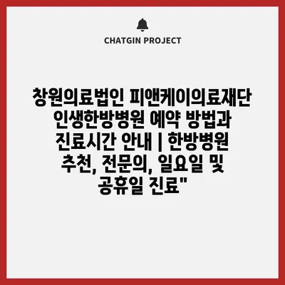 창원의료법인 피앤케이의료재단 인생한방병원 예약 방법과 진료시간 공지 | 한방병원 추천, 전연락, 일요일 및 공휴일 진료”에 대해 자주 묻는 질문 TOP 5