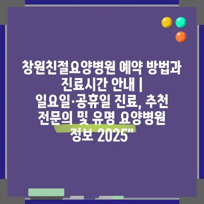 창원친절요양병원 예약 방법과 진료시간 공지 | 일요일·공휴일 진료, 추천 전연락 및 유명 요양병원 정보 2025″ 에 대해 자주 묻는 질문 TOP 5