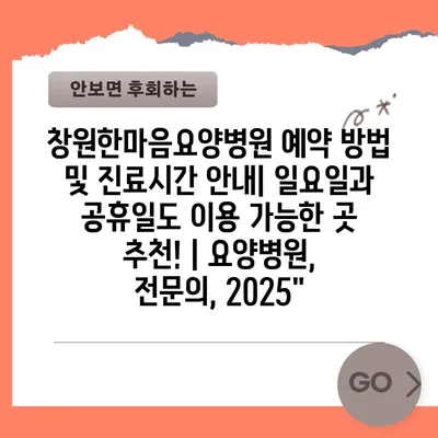 ✅ 창원한마음요양병원의 예약 방법을 쉽게 알아보세요!