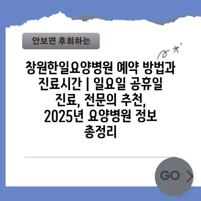 창원한일요양병원 예약 방법과 진료시간 | 일요일 공휴일 진료, 전연락 추천, 2025년 요양병원 정보 총정리 에 대해 자주 묻는 질문 TOP 5