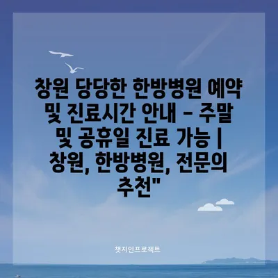창원 당당한 한방병원 예약 및 진료시간 안내 – 주말 및 공휴일 진료 가능 | 창원, 한방병원, 전문의 추천”