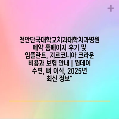 천안단국대학교치과대학치과병원 예약 홈페이지 후기 및 임플란트, 지르코니아 크라운 비용과 보험 공지 | 원데이 수면, 뼈 이식, 2025년 최신 정보” 에 대해 자주 묻는 질문 TOP 5