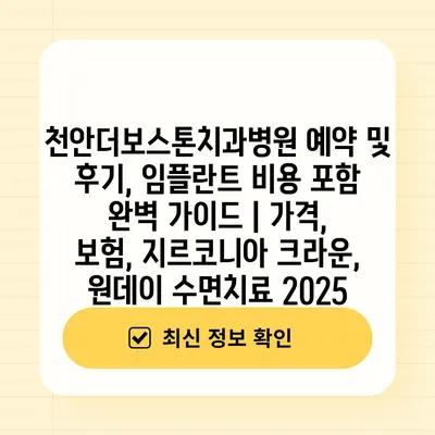천안더보스톤치과병원 예약 및 후기, 임플란트 비용 포함 완벽 설명서 | 가격, 보험, 지르코니아 크라운, 원데이 수면치료 2025에 대해 알아보겠습니다.