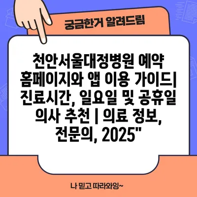 천안서울대정병원 예약 홈페이지와 앱 이용 설명서| 진료시간, 일요일 및 공휴일 의사 추천 | 의료 정보, 전연락, 2025″ 에 대해 자주 묻는 질문 TOP 5