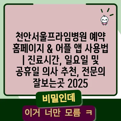 ✅ 천안서울프라임병원의 예약 앱 사용법과 기능을 알아보세요.