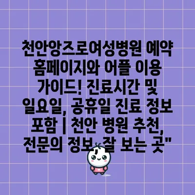 ✅ 천안앙즈로여성병원 진료 예약을 쉽게 하는 방법을 알아보세요.
