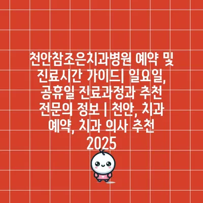 천안참조은치과병원 예약 및 진료시간 설명서| 일요일, 공휴일 진료과정과 추천 전연락 정보 | 천안, 치과 예약, 치과 의사 추천 2025 에 대해 자주 묻는 질문 TOP 5