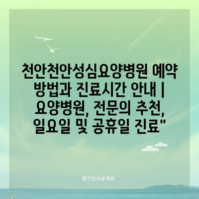 천안천안성심요양병원 예약 방법과 진료시간 공지 | 요양병원, 전연락 추천, 일요일 및 공휴일 진료 에 대해 자주 묻는 질문 TOP 5