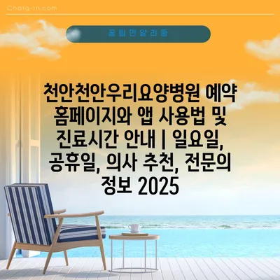 천안천안우리요양병원 예약 홈페이지와 앱 사용법 및 진료시간 공지 | 일요일, 공휴일, 의사 추천, 전연락 정보 2025 에 대해 자주 묻는 질문 TOP 5