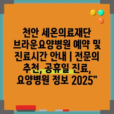 ✅ 천안 세온의료재단 브라운요양병원 예약 방법과 진료 정보를 알아보세요.