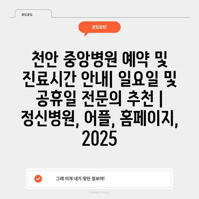 천안 중앙병원 예약 및 진료시간 공지| 일요일 및 공휴일 전연락 추천 | 정신병원, 어플, 홈페이지, 2025에 대한 내용을 알려알려드리겠습니다.