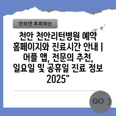 천안 천안리턴병원 예약 홈페이지와 진료시간 안내 | 어플 앱, 전문의 추천, 일요일 및 공휴일 진료 정보 2025″