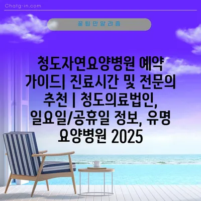 청도자연요양병원 예약 설명서| 진료시간 및 전연락 추천 | 청도의료법인, 일요일/공휴일 정보, 유명 요양병원 2025