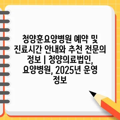 청양훈요양병원 예약 및 진료시간 공지와 추천 전연락 정보 | 청양의료법인, 요양병원, 2025년 운영 정보에 대해 자주 묻는 질문 TOP 5