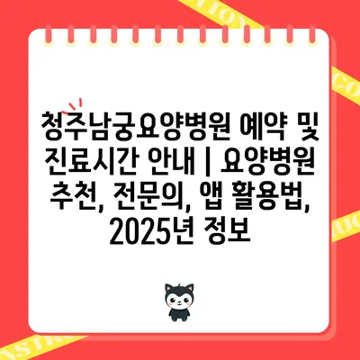 청주남궁요양병원 예약 및 진료시간 공지 | 요양병원 추천, 전연락, 앱 활용법, 2025년 정보 에 대해 자주 묻는 질문 TOP 5